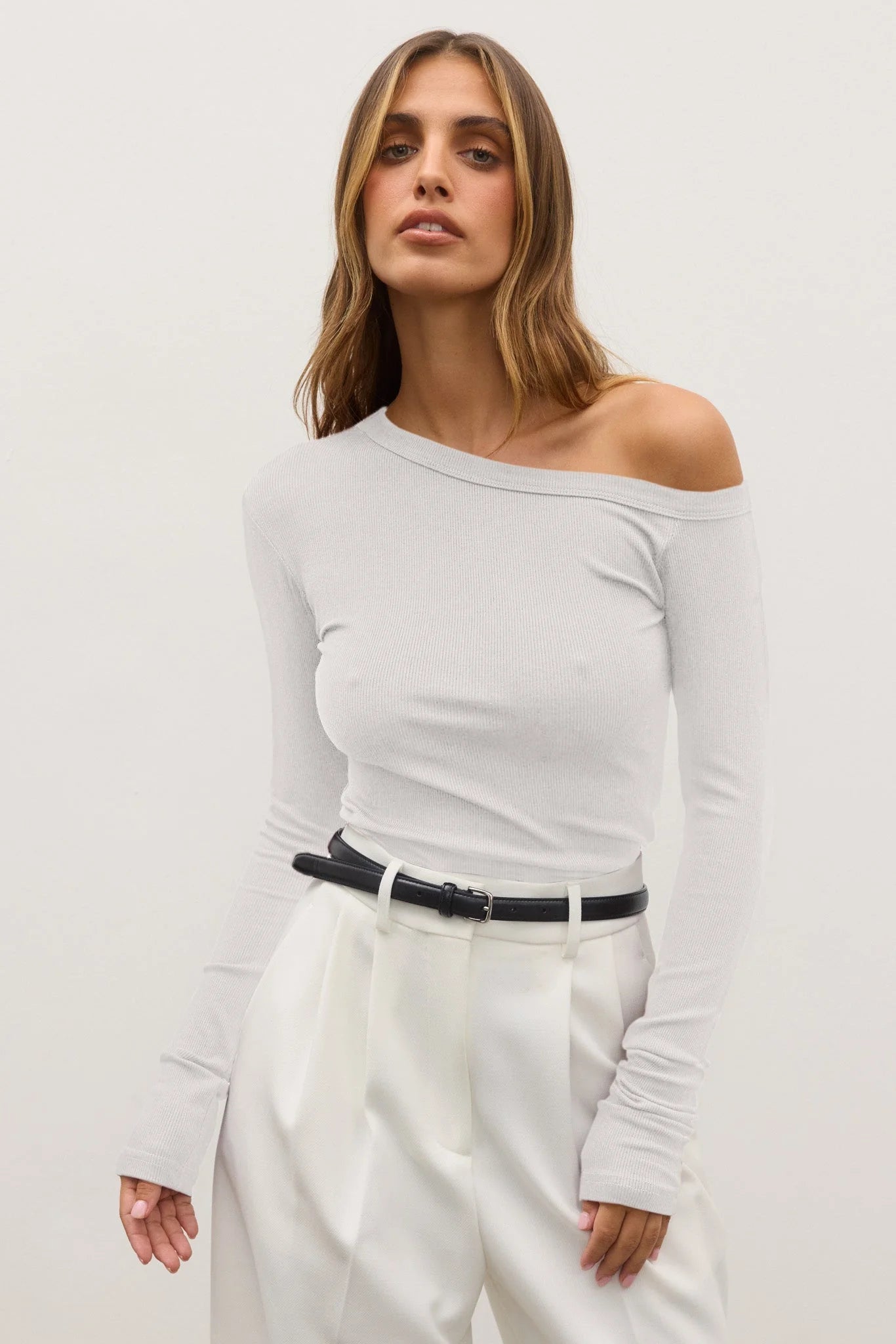Introducing Aria, our off the shoulder ribbed knit top. Crafted from a soft, stretchy fabric, this fitted long-sleeve top offers a sleek silhouette while ensuring all-day comfort. The asymmetrical neckline adds a modern touch, making it perfect for both casual outings and elevated occasions in our gorgeous wine colour way.